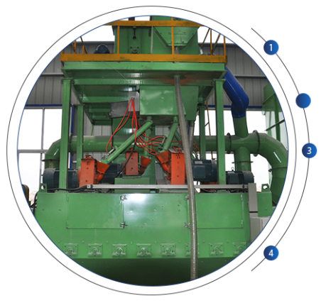 Ekipman: otomatik rulolu konveyör, kumlama tekerleği, kumlama odası, vidalı konveyör, kovalı elevatör, ayırıcı, toz toplayıcı.