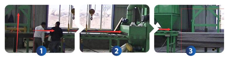 ●Makaralı konveyörlü kumlama makinesi aynı anda taşın üstünü ve altını temizleyebilir.